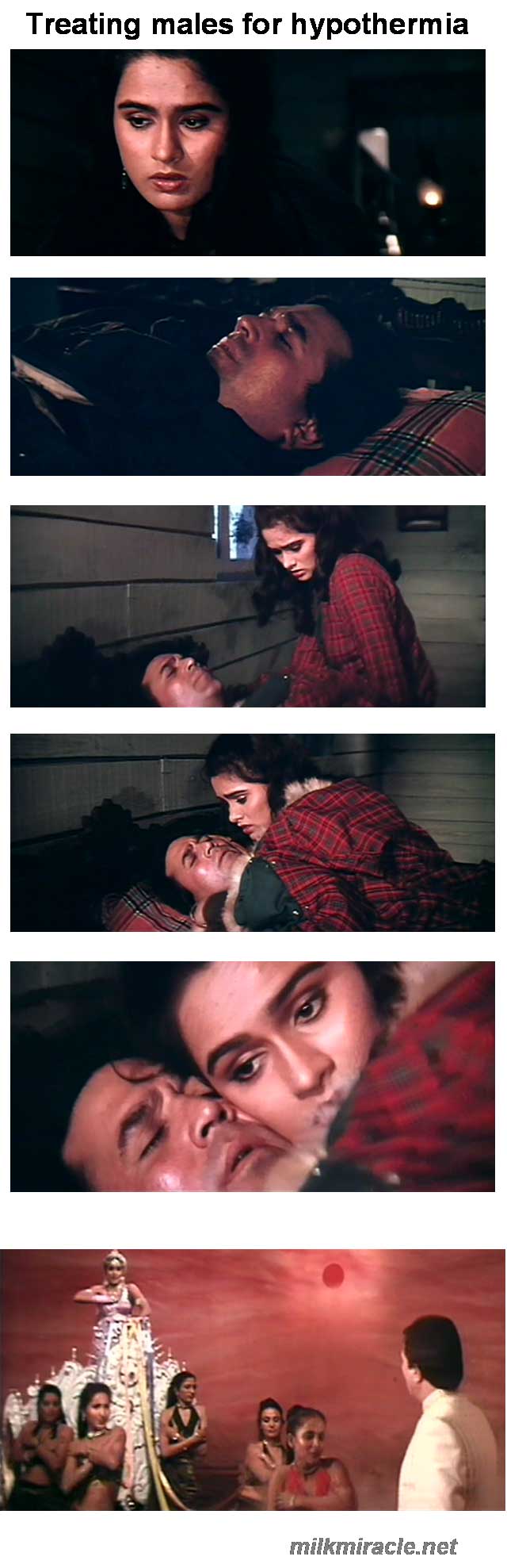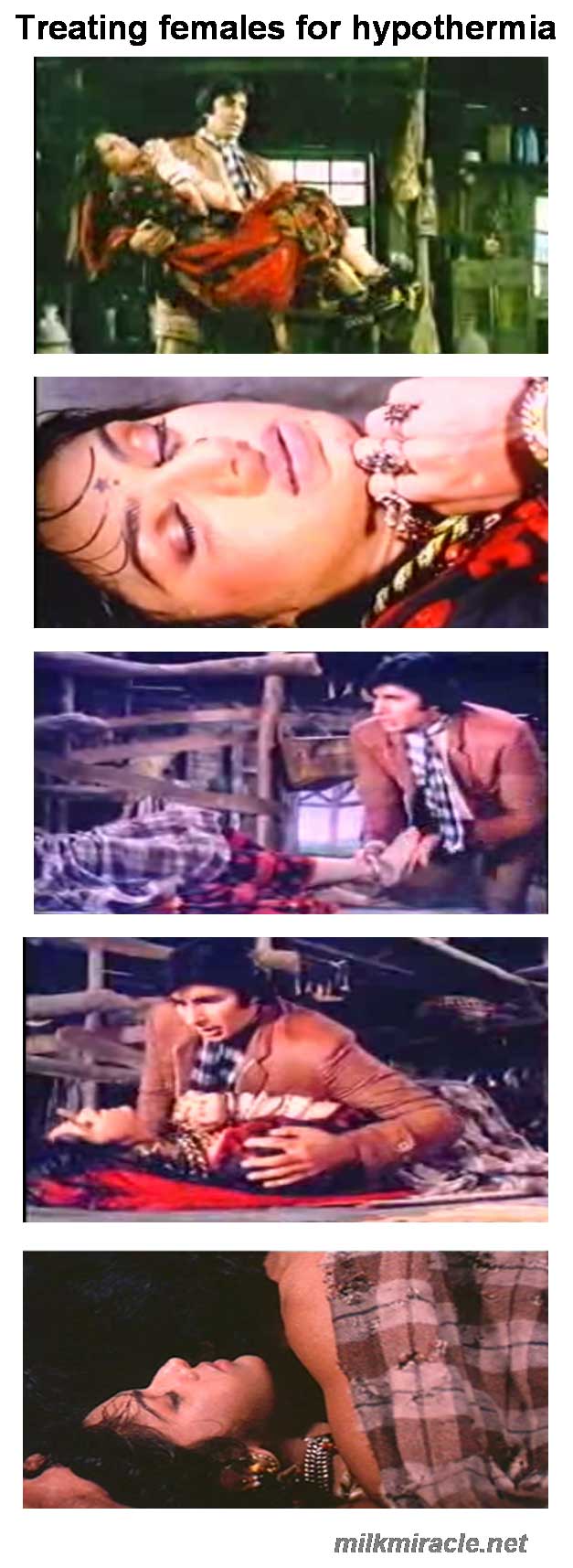 Unfortunately, South Asian governments choose to dedicate resources disproportionately to other ailments such as malaria, tuberculosis, infant diarrhoea, heart disease, cancer, and AIDS. This is unfortunate since experts are of the opinion that “the cold sleep is the sleep of death” (“sardi ki neend maut ki neend hoti hai” vide Ganga, Jamuna, Saraswati). With these conclusions firmly established, the Bollywood Hindi film industry has lead some trailblazing research in finding proper treatments for hypothermia. In this research article, the state-of-the-art in Bollywood hypothermia treatment for male and female patients is discussed. For the first time, exact details of how this treatment is effective are presented to the medical community.